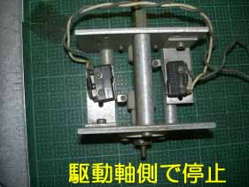 この機構を使い上記の位置制御回路のスイッチに応用すれば、同じ機構となる。当然だが、位置調整の補正ができる様にして無いと意味が無くなる。マイクロスイッチの取り付けの穴は、画像でも見えるように長孔となっている