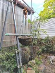 裏庭の手水鉢が、倒壊。