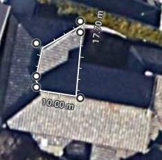 Googleの衛星写真で流れ込む屋根の面積を確認して見た。(約畳で6畳弱だが、一雨降ると溢れる)