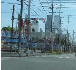 30m先の信号が、こんな風に見える。当然、目からの距離が遠くなると画像の間隔が広がって行く。
