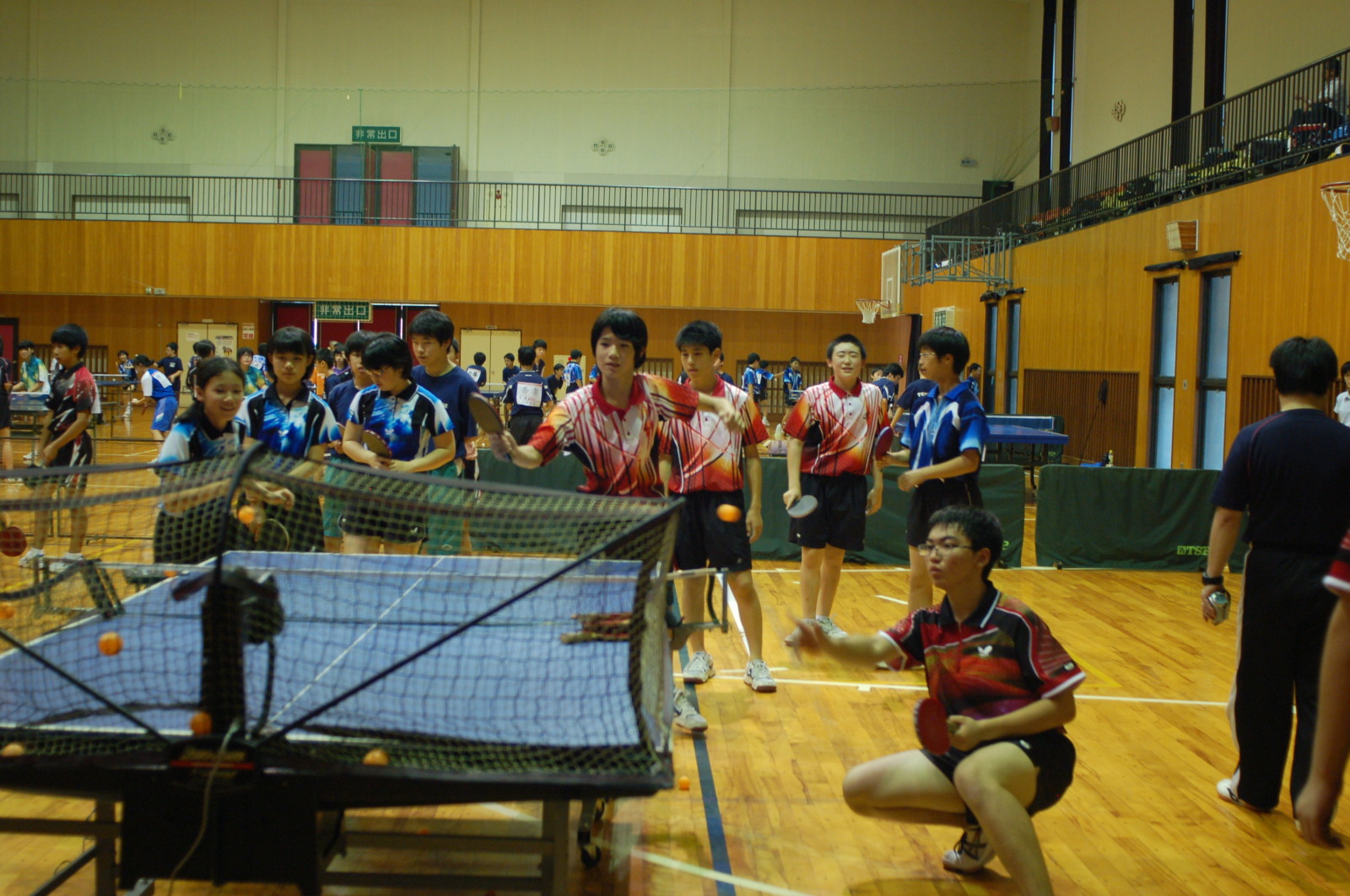 まず1番助かったのが、斎藤さんの所有の卓球マシン(4台)をフル稼働して、いっぺんに約60名ほどの生徒さんの打球練習が出来たこと。