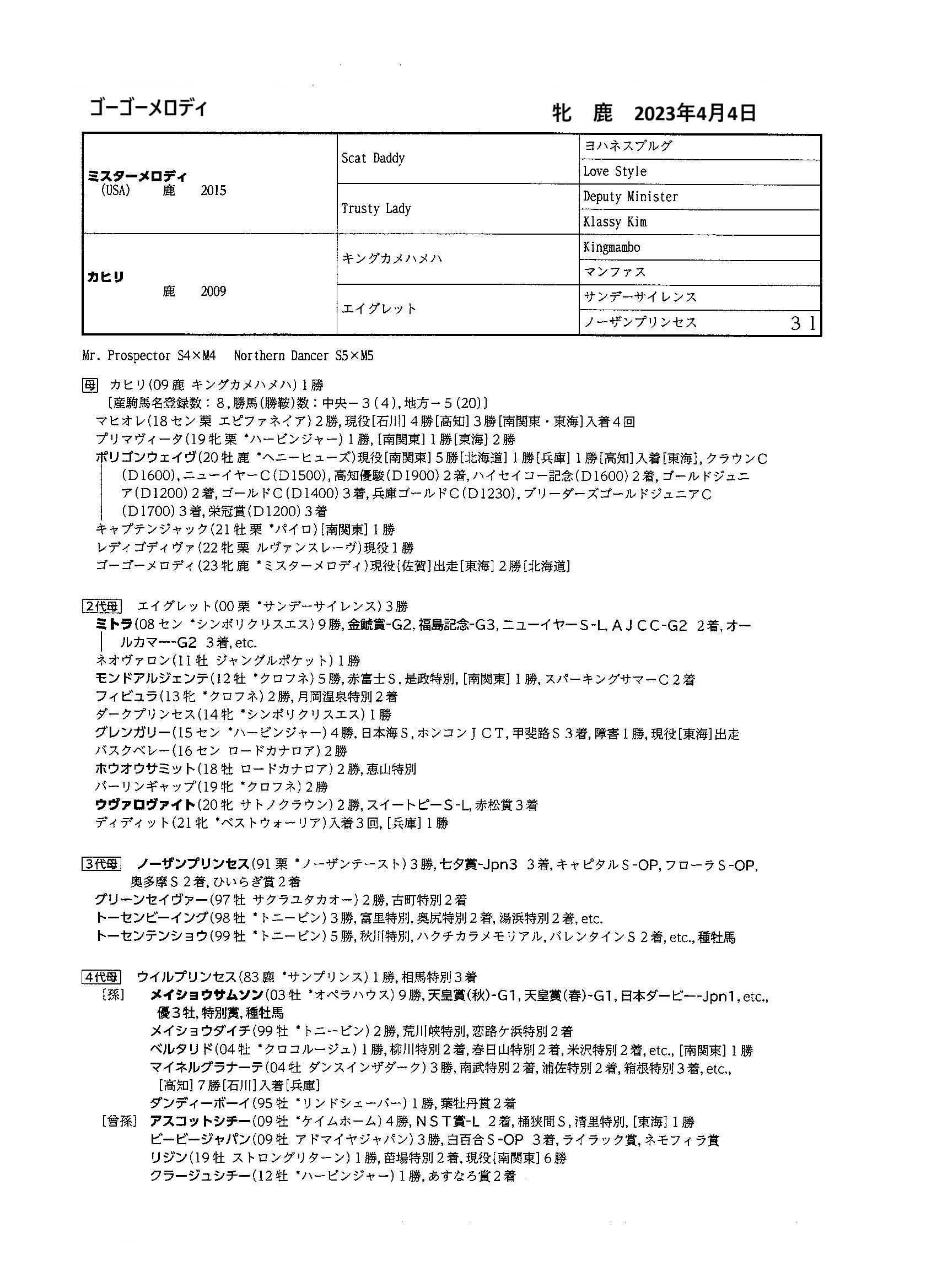 | 血統表とブラックタイプ | お申込みはこちらから | ゴーゴーメロディのブログ |