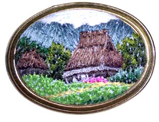 市販されてる刺繍用の財布に適当に茅葺屋根の風景をアレンジ。