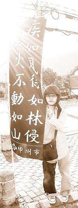 The Flag in the photo read about " Act like a WIND, FOREST, FIRE and MOUNTAIN. "