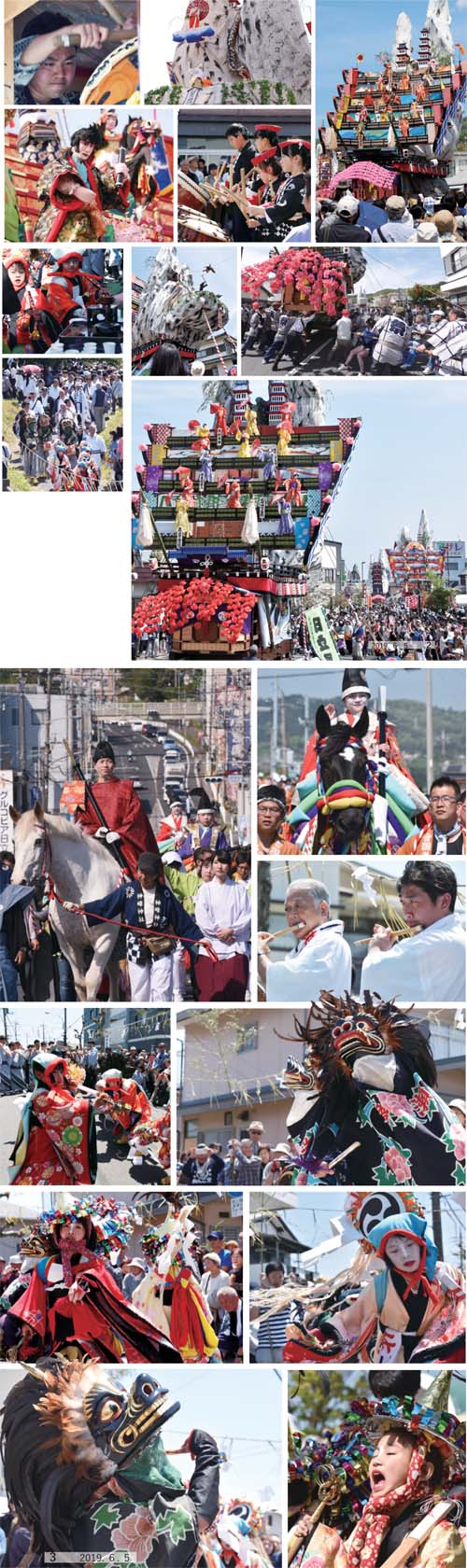 5月3日から5日にかけて、7年に一度の神峰神社大祭礼が行われ、日立風流物と日立のささらが特別公開されました。ユネスコ無形文化遺産で、国指定重要有形・無形民俗文化財の「日立風流物」は、7年ぶりに東町、北町、本町、西町の4台の山車が同時に公開され、会場は多くの人でにぎわいました。