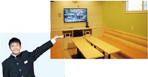 持ち込み自由!みんなで食事を持ち寄って、 レッツ、カラオケ! 店員16人のカラオケルームが2部屋あります。 日帰りの方は、昼の部(10時〜15時)で利用できます。 |