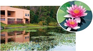 夏には大きな池の一面に、ピンクや白に色づいた手のひらほどの大きさの花が、太陽をいっぱいに浴びせながら咲き誇ります。 |