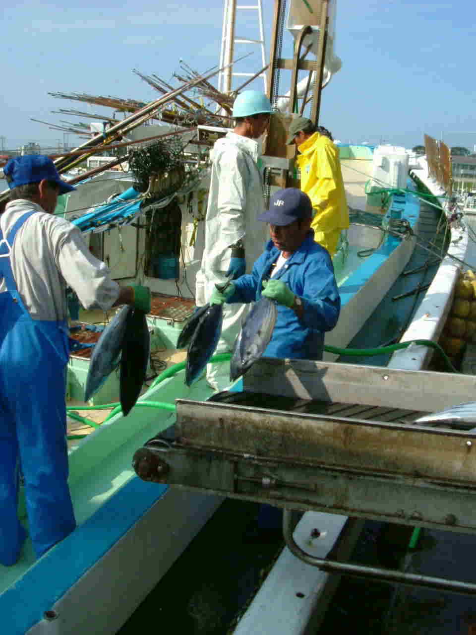 那珂湊港には、土佐の一本釣りのカツオ船が水揚げしています。