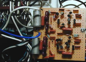 問題の出力コンデンサーは、TRWマークが入った、素性の良く分からないけど良さそうな、0.33マイクロ 50Vとする。RIAAの時定数用Cは、NTKのディップマイカで、抵抗は基本的にはニッコーオム(オーディオ用)、電源パスコンはメタライズフィルムの2.2マイクロを使用。