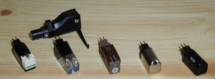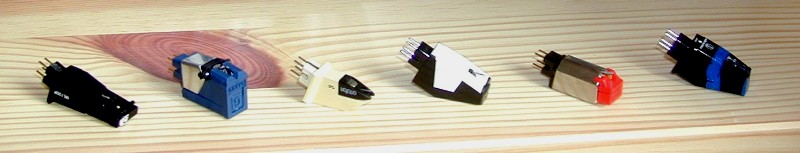 左から、Shure ML120P, Grado ELP4, Ortofon TM14U,Dual MMP 450,Shure Alta Pro 2, Audio Technica AT3482P