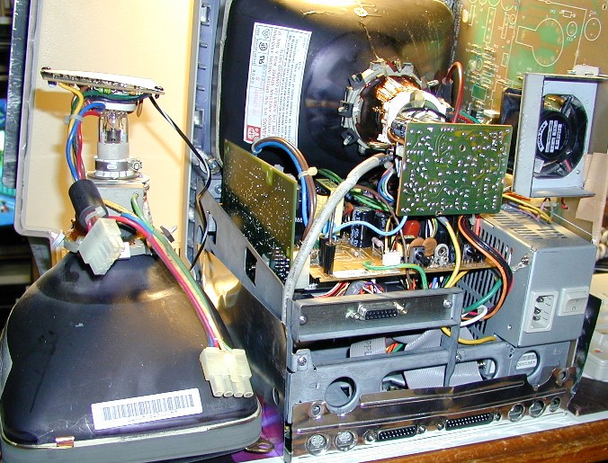 なんと、新たなビデオ基盤は、HDDのCRTの間に無理やり押し込まれている。