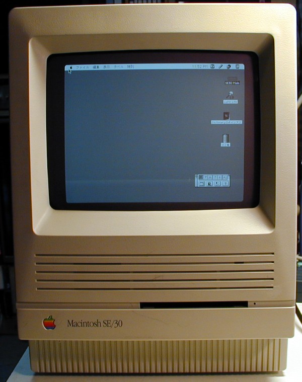 たまたま、秋葉原仲間である、リンク集にもあるNebula氏が、9インチのモニターを持っているのを思い出し、また、Doping MAC・WEB等の改造記事には、このモニターが使われているのが確認されたので、中古という事で安く買い取り、512x342 1bitビデオから、もともとMicron Xceed8までついていたのを良い事に、640x480 256階調グレイスケール化に取り組んだ。紆余曲折があったが写真の様に、無事成功。