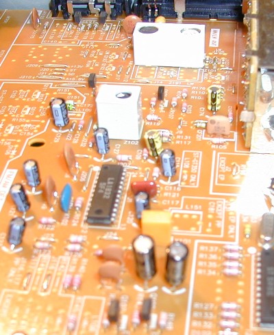 思ってはずすとこれは、2.3V 3.3Fの電気2重層タイプの電池とコンデンサーの中間タイプのコンデンサー。これが直列で入っていたのが両方ともパンクしていておもらしている。この手のキャパなんで、これで設定を電源が来てない時も保持してたのが、まったく何もなくなっていたので、プリセットした局が電源コードを抜かれると無くなっていたのであろう。この予備は持ってきてないので、とりあえず電解コン、50V、1000uFを入れる。まあこれでは、3−4日しか持たないであろうがないよりまし。電圧を測ってみると、なんと、5.2V来ているということで、これは完全な設計不良。3個直列しないともたないでしょう。しかも、それでも、バランスが取れるとはかぎらないので、危ない設計。日本に残してきた、予備の耐圧が足りなければ、あっさり単3・2個用電池ホルダーでもいれて、それでキープ。これが一番、実用的だったりして、実際のFMチューナもこのタイプがある。