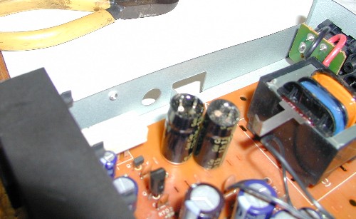 3番目の写真に大きな、バックライト用の部屋が写っている。4番目が設計不良で飛んだ商標名、Gold Capをはずした直後、トランスの横において取ったもの。拡大すると、リードも腐食してなくなっているのがわかる。かわいそうに、このモデル、きっと全部飛んでいるでしょう。
