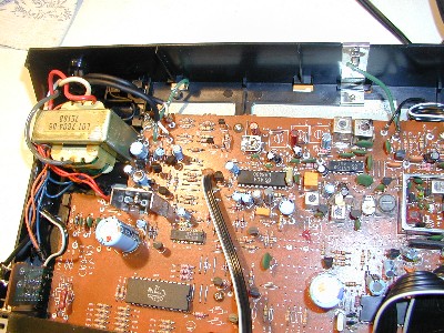 D:なんと、バックライトは、昔ながらのパイロット電球で、ソケット無しで、リードを配線用より線に圧接してある。めげずに、Radio Shackで、ソケット用の電球かって来てはんだ付け。で、おしまいと思ったら、電源スイッチが、トランスの2次側に入っていて、ロジック用とこの電球用を別にしあり、しかも、よく、使われるプッシュタイプで、これも定番の接触不良。ばらして、掃除して、戻すも、ラッシュが多い電球側はてこずる、2回掃除。で、大きな電解コンみたいやつの2つのチューブが縮んでいる。なんで、仲良くと