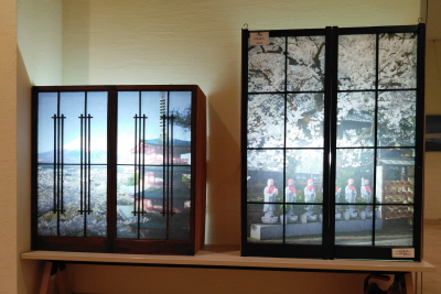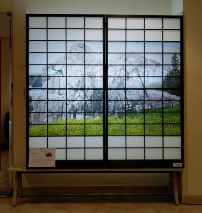 障子紙にインクジェットプリンターで複数個所に分けて印刷し、障子に貼りました。