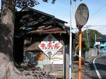 そして時は流れて04年頃、私の旧ホムペを見た方から「長沢にキンチョーの琺瑯看板がある」という情報を頂き確認に訪れるも、それは残念ながら殺虫剤の「キンチョール」のもので、蚊取り線香の渦巻きデザインのほうではなかったのです。それでも「レトロ風」な演出装飾ではない、リアルな家屋に取り付けられていた琺瑯看板という点では、貴重な物件だったということに間違いはないのですけどね。