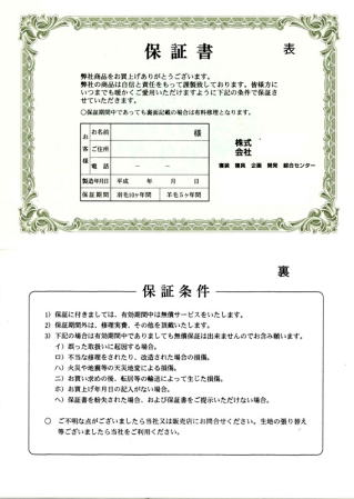 内容は、工夫次第! オリジナル保証書(両面)裏面規約入り、100枚 商品コード:syh100 シロアリ駆除スズメバチ駆除等の保証書、