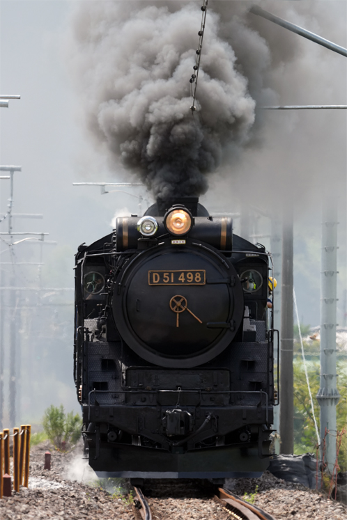 驀進する懐かしい蒸機の雄姿 D51498 (後閑−上牧;123KポストSカーブ)