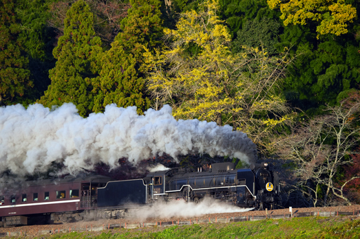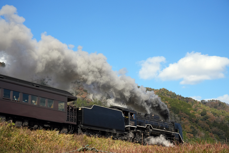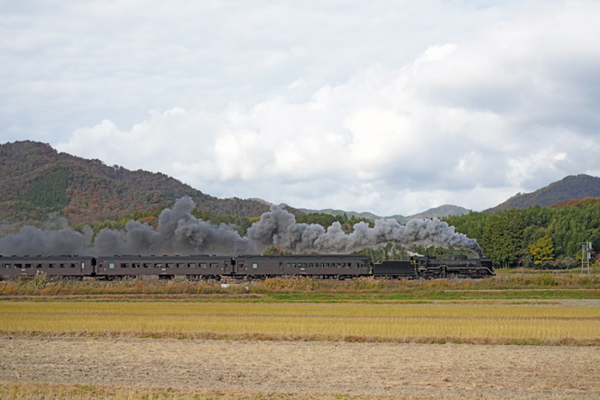 徳佐駅から素晴らしい煙と景色の競演 C571/D51200 (徳佐−船平山;徳佐のSカーブ)