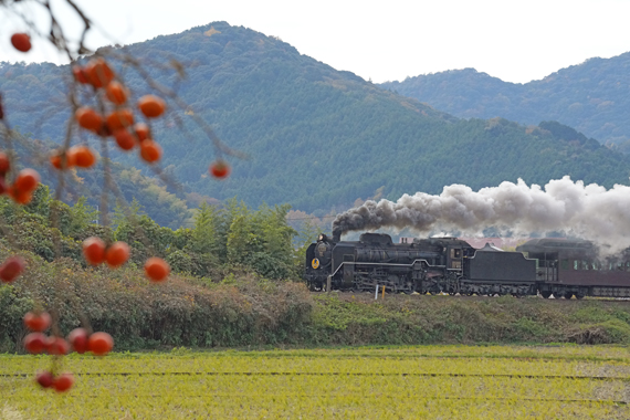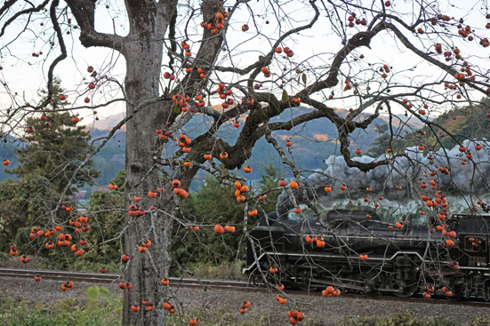 秋の8521レ D51200 (宮野−仁保;大山路踏切手前の柿の木)