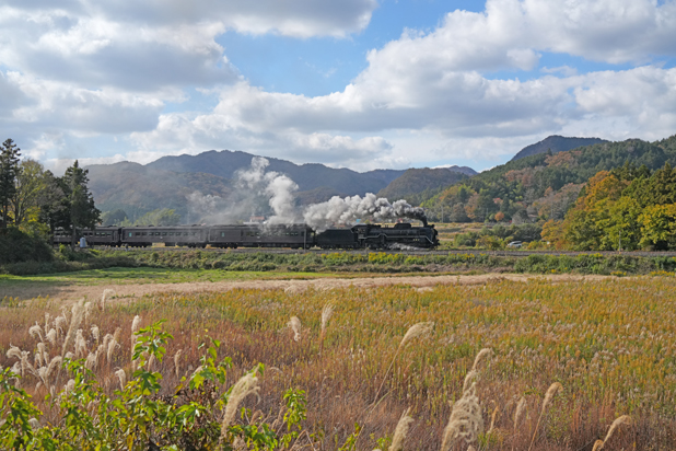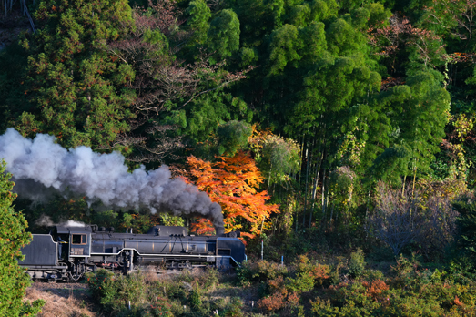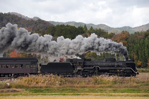 2013年7月28日の降雨不通から全線復旧が8月23日、その後初の紅葉シーズンを走る C571 (船平山−津和野;白井の里)
