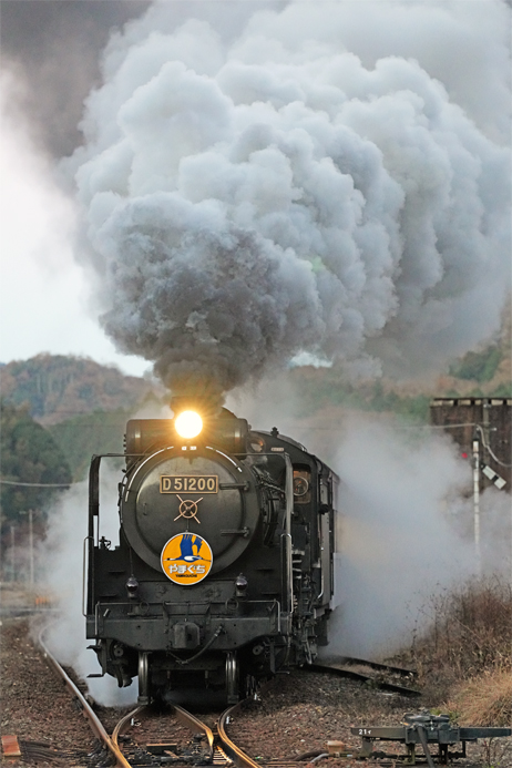 夜明けの静寂を破って大山路を驀進 D51200 (宮野−仁保;大山第一踏切)