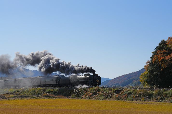 秋の津和野路を行く D51200 (津和野−船平山;鳴滝踏切先)