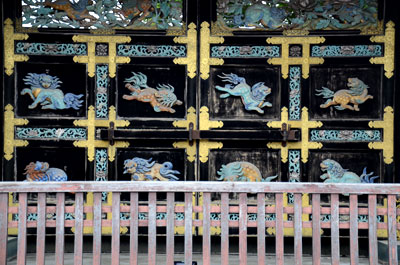 唐門(からもん)が立っている。黒漆の柱や梁に絢爛豪華な彫刻が施された唐破風の四脚門(しきゃくもん)である。麒麟や唐獅子などの想像上の動物や牡丹の透かし彫りを見る。桃山時代の伏見城の遺構と言われ、現在地に移築されたと伝えられている。国宝である。