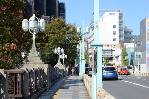 反対側へ渡り石段を上る。右へ曲がり、明治通りに沿って坂道を上がる。音無橋の上に出る。音無橋の街灯は昭和初期の雰囲気があり、竣工当時のままで変わってないと思われる。