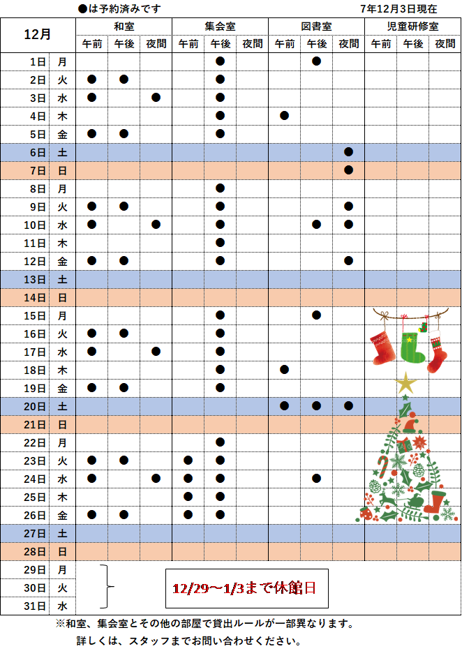 12月の予約状況