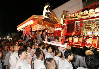 仲町と二番町の境で神社御神輿を待つ仲町御神酒所