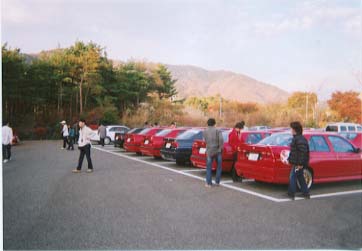 挨拶もそこそこに、そのまま駐車場で155談義をしていると、更に1台の155が入ってきました。湖畔で食事を終えたさんまさんでした。今年は遂に奥様のi-pandaさん(=現在の”ai-aiさん”ですね)をご同伴です。「初めまして、いつもご主人にはお世話(?)になりっぱなしで・・・」とここは大人のご挨拶。そうこうしている中に、続々と参加車両が集まってきました。流石に皆さん、行儀が良い。放っておいてもキレイに駐車しているな…と感心していましたが・・・ 松永さんが誘導していてくれたんですね。早くも何もしていない俺@幹事。ハハハ。