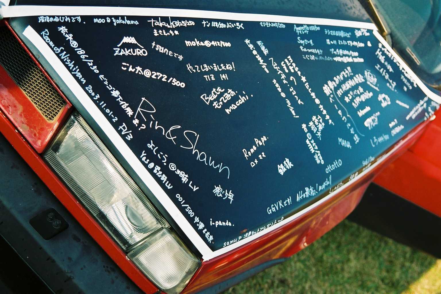 僕も書かせていただきましたが、自分と同じ(…だよな多分)クルマに寄せ書きするのって、なんかとても変な気持ち。