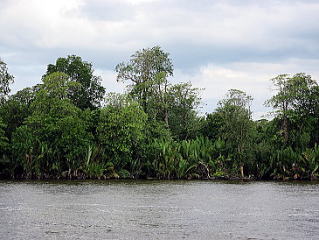8月16日、関西空港から出発し、仁川空港で乗り換えて、ジャカルタ空港に着きました。この日は、ジャカルタ空港の近くのホテルに泊まり、翌日ジャカルタ空港からパンカランブン空港に行き、そこからタクシーでクマイという港町まで行きました。クマイからは、船に乗って、セコニャール川を上り、タンジュンハラパン村へ向かいました。船から見る景色は美しい熱帯林がつづく、すばらしいものでした。