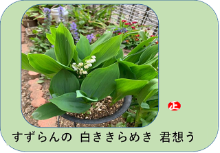 ・季語は一句の主役なので、カタカナ表記は図鑑のようで少しぞんざいな印象⇒「鈴蘭」か「すずらん」にするとよい