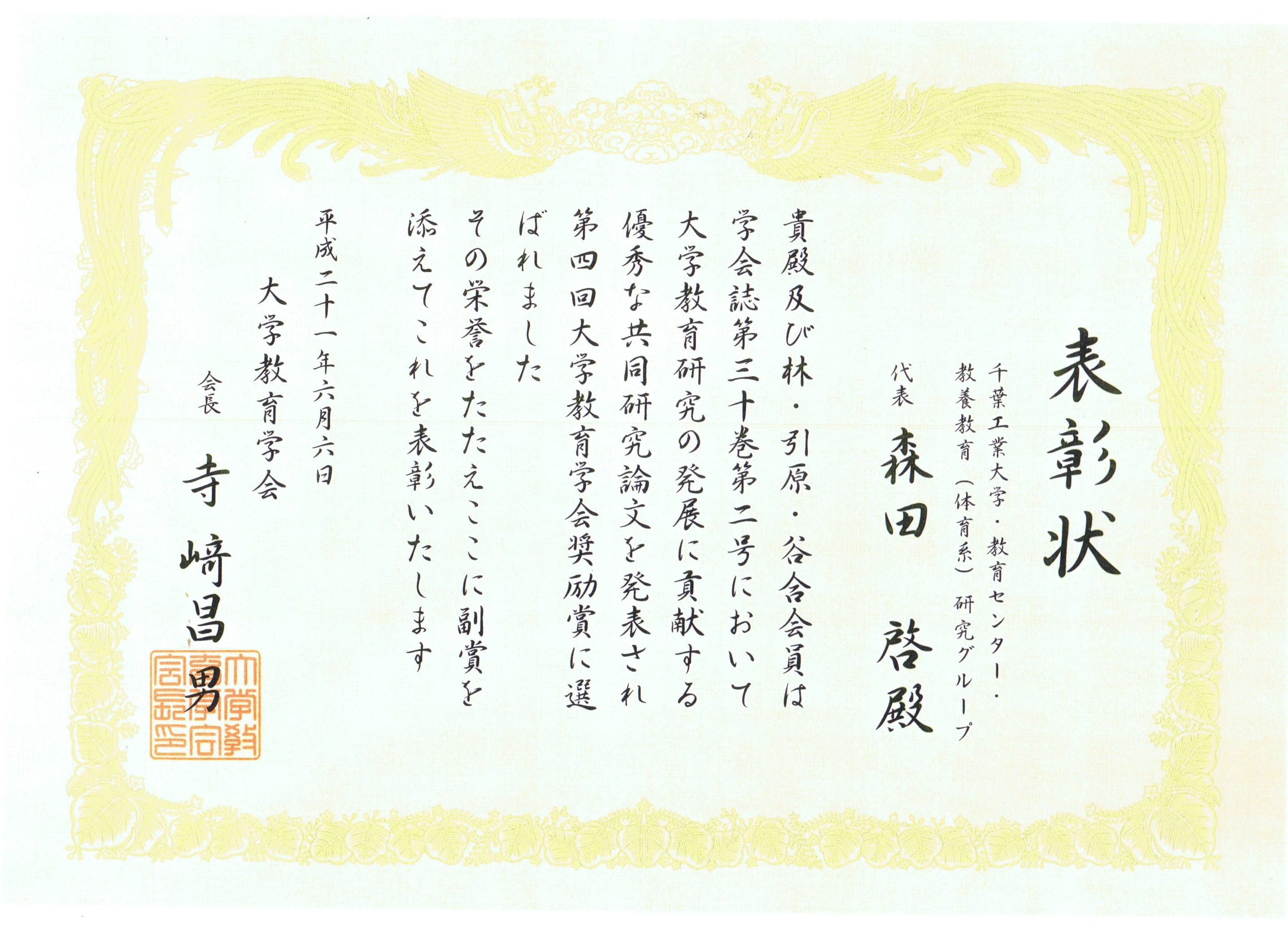 この論文により筆頭著者である森田啓先生が「大学体育奨励賞」を受賞しました。