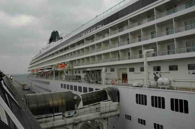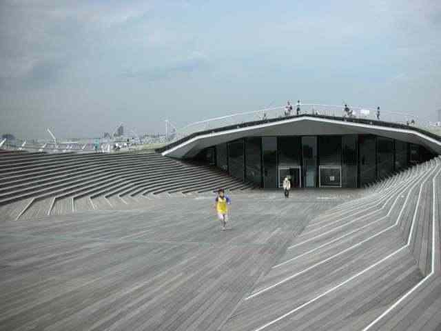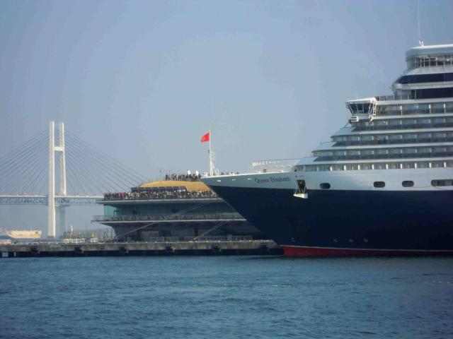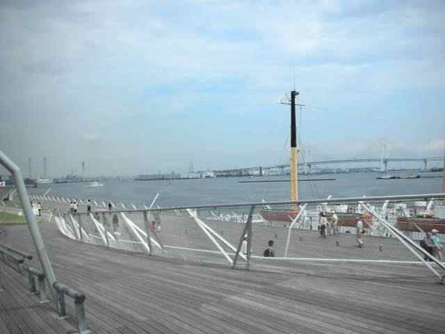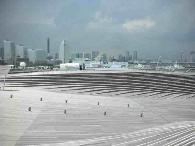 9.大桟橋のこと 正式には「横浜港 大さん橋 国際客船ターミナル」横浜は開国以来外洋への港として発展してきました。現在でも海外からの大型客船の発着港として整備が続きます。通称「大桟橋」と呼ばれる埠頭では10万トン級の大型客船も停泊できる諸設備が完備されているのですがその様子を紹介します。大さん橋は全床木張りが眼を引きます。