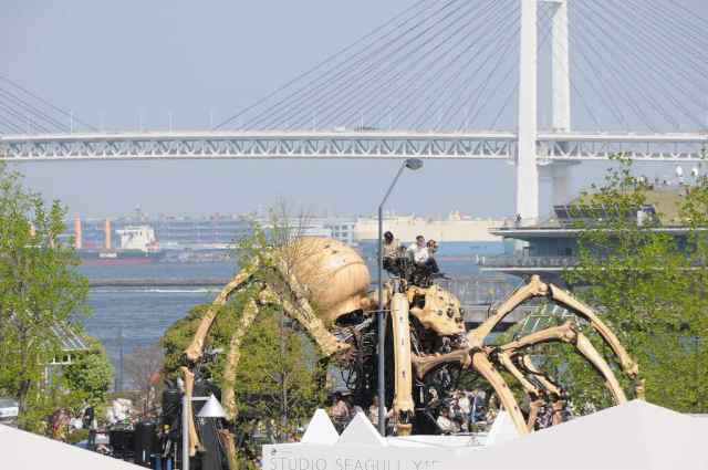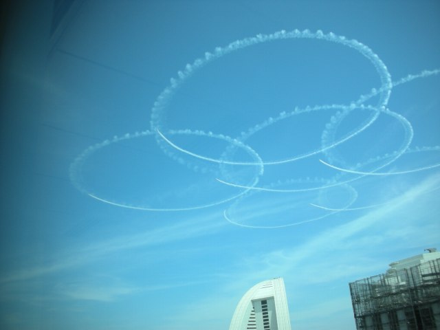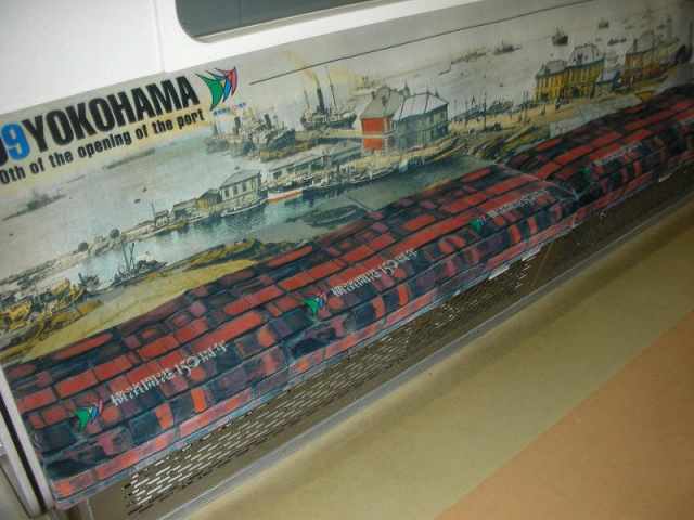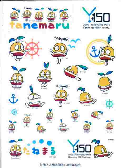 3.Y150:横浜開港150周年記念祭のこと 2009年に開催された横浜開港150年祭を私なりに記録していた画像を紹介します。 @大グモ:Y150のイベントのひとつとして「大グモ」が「みなとみらい」地区周辺で見られました。フランスの「ラ・マシン」と呼ばれる劇団の運営で機械仕掛の「クモ」でした。操縦者などが人ほど乗って広場などを闊歩していました。以下はその時の物。一目で大きさが分かります。 A横浜市営地下鉄車内のY150開催広告に改装されたシート。 B ブルーインパルスの演技:航空自衛隊ブルーインパルスによる演技飛行が横浜港の上空で行われました。私はたまたま居合わせた「みなとみらい」地区のビルから見ることが出来ました。 CY150記念シール:ハガキ大の台紙に20組ほどのシールが剥がせるようになっていました。内容は「たねまる」と言うシンボルキャラクターが使われていました。