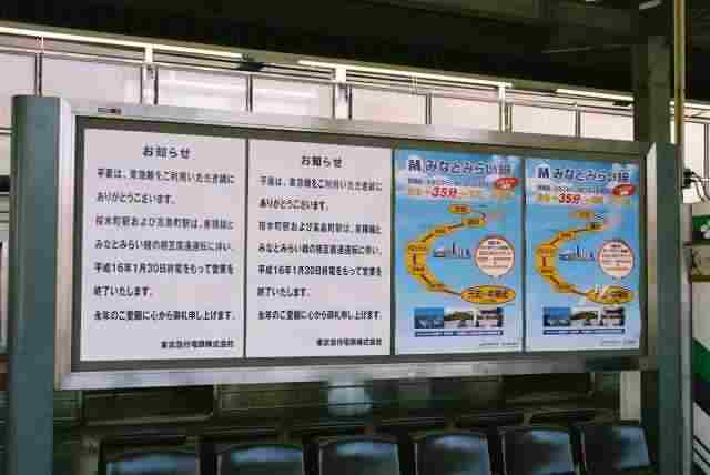8.東横線のこと 2004年2月1日渋谷と横浜を結ぶ東急東横線ですがその終点は開業以来長いこと桜木町でした。横浜の臨海部である「みなとみらい」地区の整備が進んでその交通手段の一つとして、また東急東横線の延伸などが絡んでの事業で東横線の横浜駅を地下化し更に経路を臨海部に向けた「みなとみらい線」として生まれ変わったのです。 その前後の様子を紹介します。特に開業前の写真は2度と見る事の出来ない貴重なものも有ります。