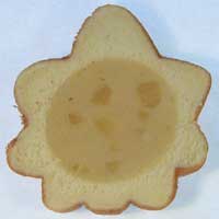 くるみ屋白あん栗入り生地は色白、餡は白あんに栗の甘露煮が入っている 38g (2002.6) |
