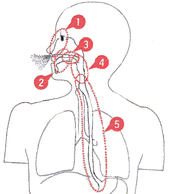 C食塊がのどに送り込まれると、咽頭蓋が持ち上がって気管への入り口を塞ぐと同時に閉じていた食道の入り口が開いて食べ物が食道へ入っていく。咽頭の途中にある声帯も閉じて食べ物が気管に入るのを防いでいる。