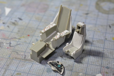 計器板、コンソールはデカール仕上げです。白黒の二色でまったく実感がありませんので、計器板はハセガワF-4の余った