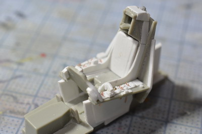 各部品を接着してコクピットの完成です。酸素ホースはスチールギターの弦を使用しています。