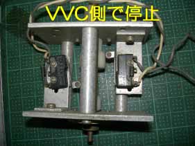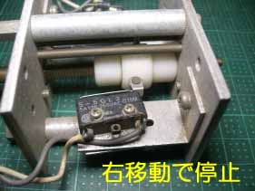 この機構を使い上記の位置制御回路のスイッチに応用すれば、同じ機構となる。当然だが、位置調整の補正ができる様にして無いと意味が無くなる。マイクロスイッチの取り付けの穴は、画像でも見えるように長孔となっている