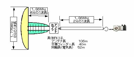 アンテナ給電は、平衡フィーダーを使い、アンテナカプラで整合!!。