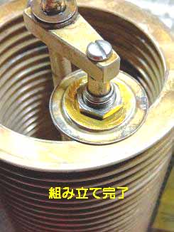全体の組み立てを終了し、全回転に対して導通テストを実施したところ、ある角度位置で解放される位置を発見した。コイルを押したりしても改善しない事が判った。「待てよ?」と思い、再度分解し、ダイアフラムを眺めてみると一か所黒い部分が在る。「これかー?」と思い、2枚共摺動面をしっかりと磨き、黒く見える部分をなくた。