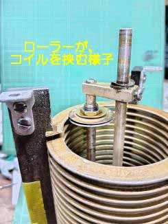 使用すべく組み立てる(画像は、支持板を取り付ける前に撮影 (ローラーが、コイルをしっかり挟んでいる)