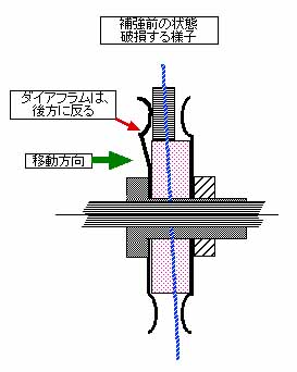 ローラーは、概略図にあるように、この接触子は、内側にある「ローラー板」をコイルの内側に接触しながら回転する。そして、両側のダイアフラムでコイルを挟み接触させる構造になっている。問題は、コイルの巻き線方向とローラーが回転しながら移動していくスライドバーと直角に交わっていないことだ。直角に交わると左右に移動しない意味する。回転方向に因り変化するけれど、このローラー接触子が、右方向に移動した時、左側のダイアフラムがコイルに接触しながらかいてんして移動する。故に移動方向の反対側に反る事になり、この反る事の繰り返しが疲労破壊の原因と断定できる。