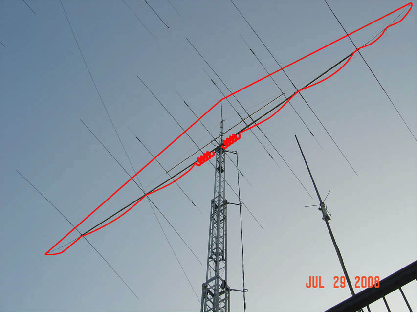 いずれにせよとんでもないアンテナで、クランクアップタワーにある14MHZ用6elフルサイズ八木を利用していて、ブームの先端にグラスファイバーの釣サオを継ぎ足してループが作られている。